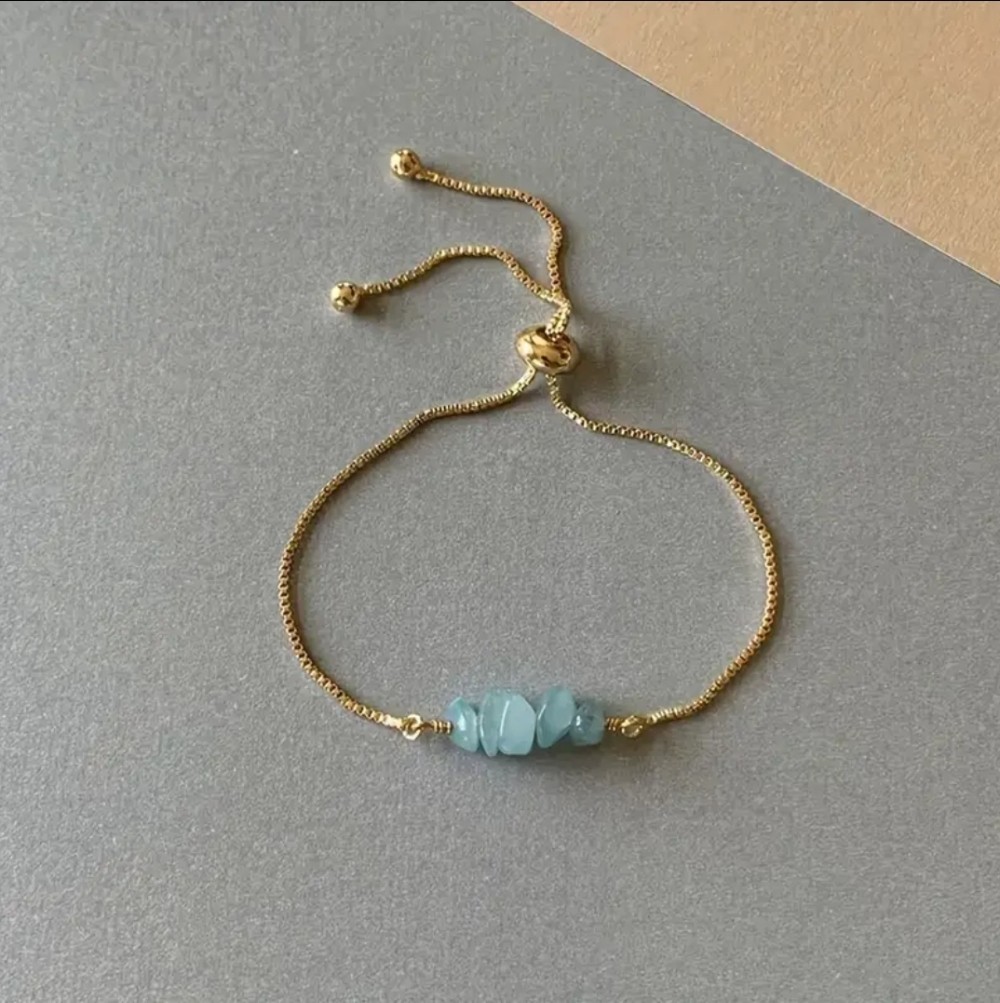 Home / Bracelets / Adjustable Gold Chain Bracelet w Natural Stones - Aquamarine