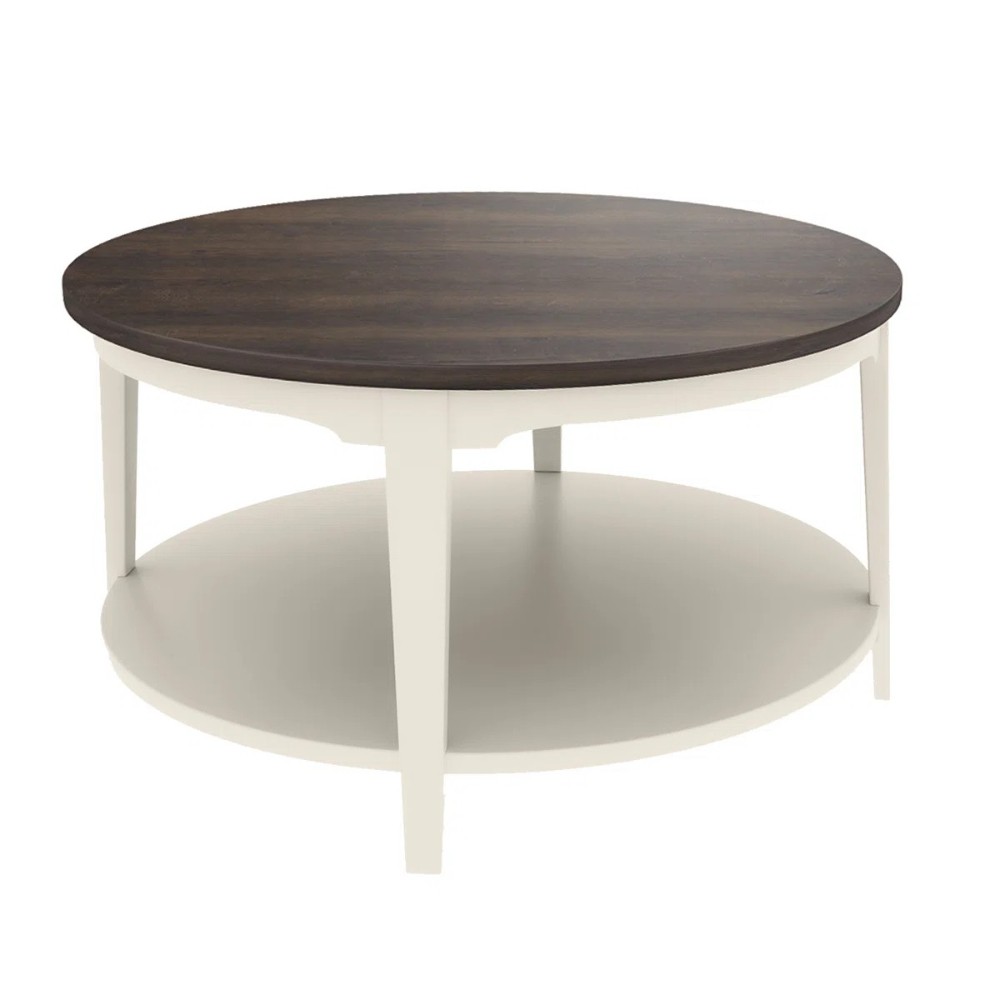 This 31.5" coffee table features a rich dark brown top with a creamy white frame for a warm, elegant look. The round tabletop offers plenty of space for drinks, décor, or everyday use, while the sturdy base provides reliable stability. A double-layer design adds extra storage, keeping your living space organized while enhancing its modern farmhouse charm. Dimensions 17.91'' H X 31.5'' W X 31.5'' D
