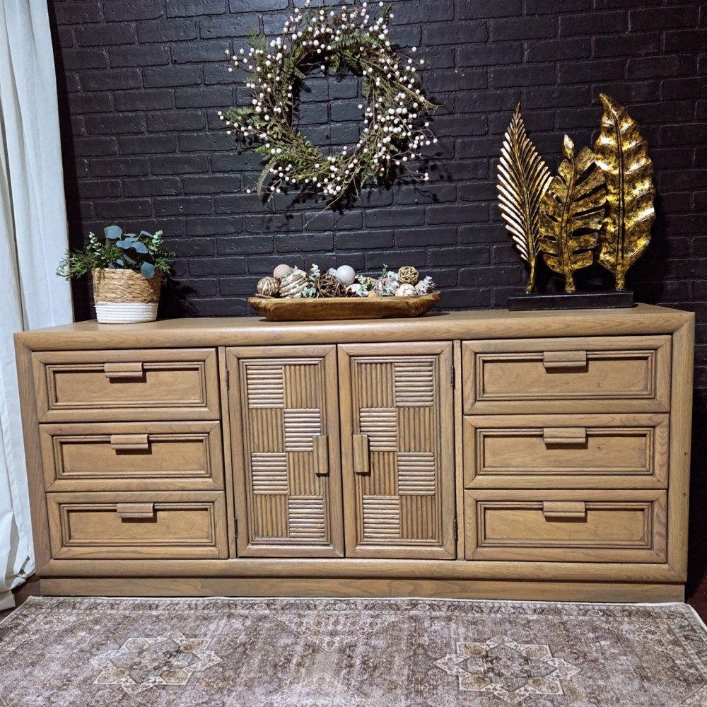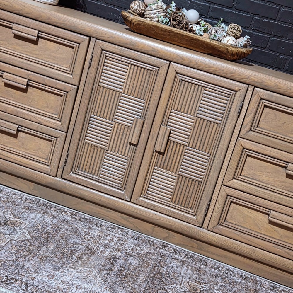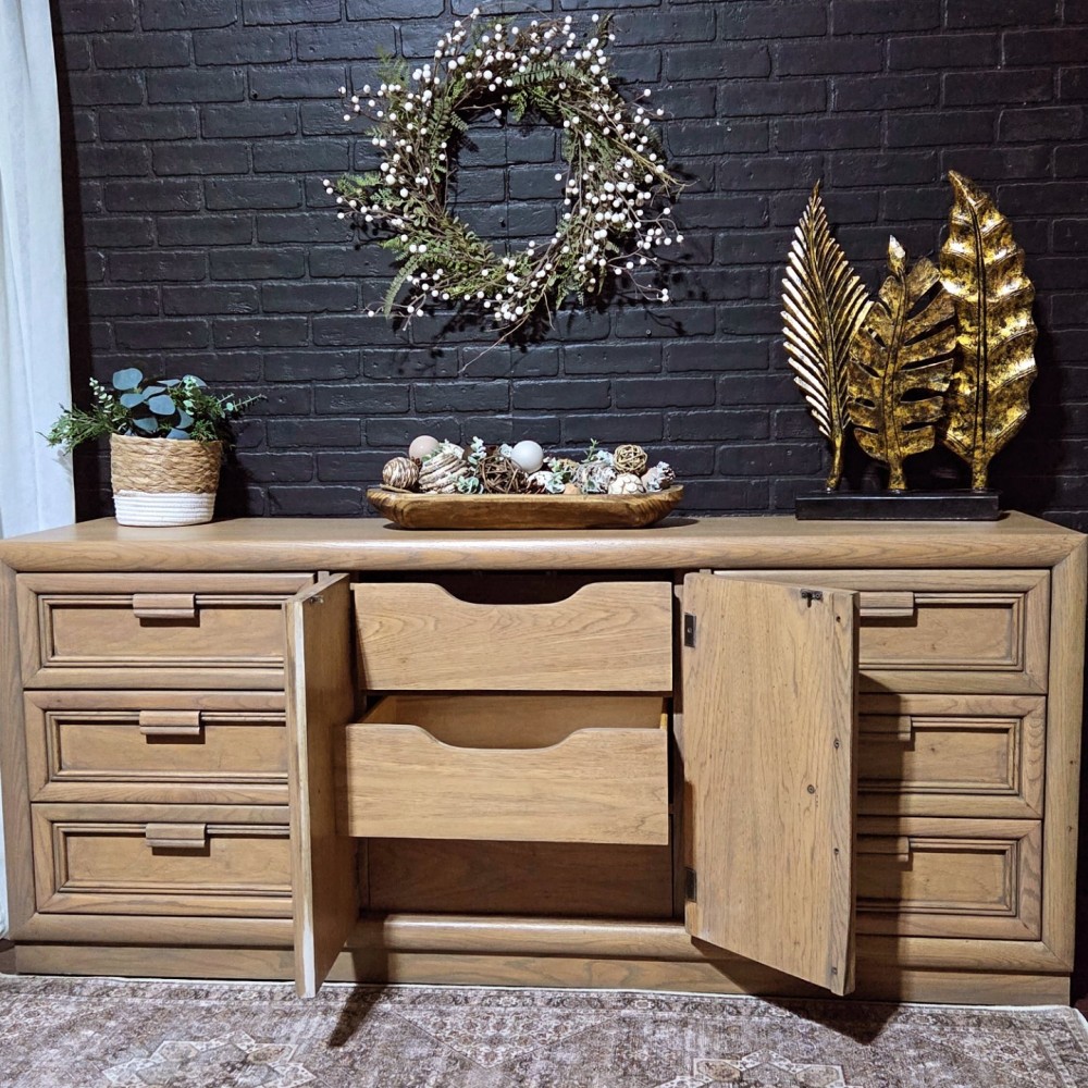 Roomy 9 drawer dresser completely stripped/sanded and paint washed in Wise Owl leatherwood. Sealed 3x in satin poly for durability and protection.