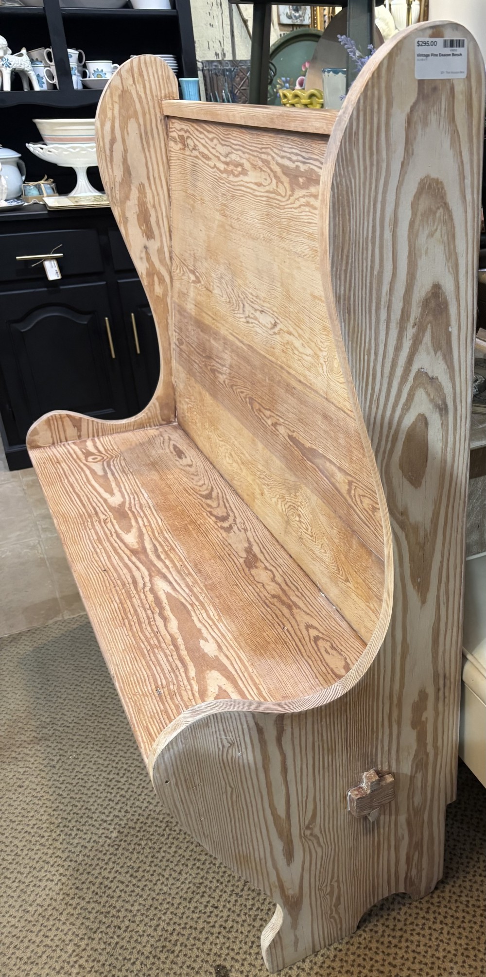 Beautiful Vintage natural pine all wood Deacon bench. Size: 48T x 17D x 44W.