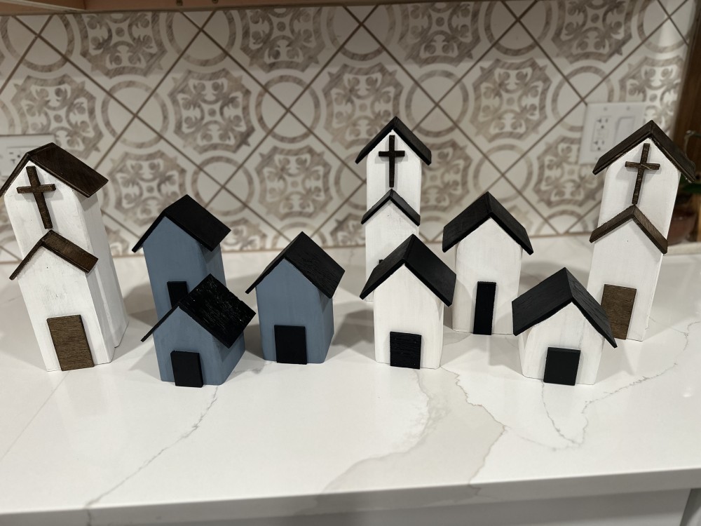 This church is handcrafted so each one is unique. A varnish topcoat is added to all of the stained and painted surfaces.