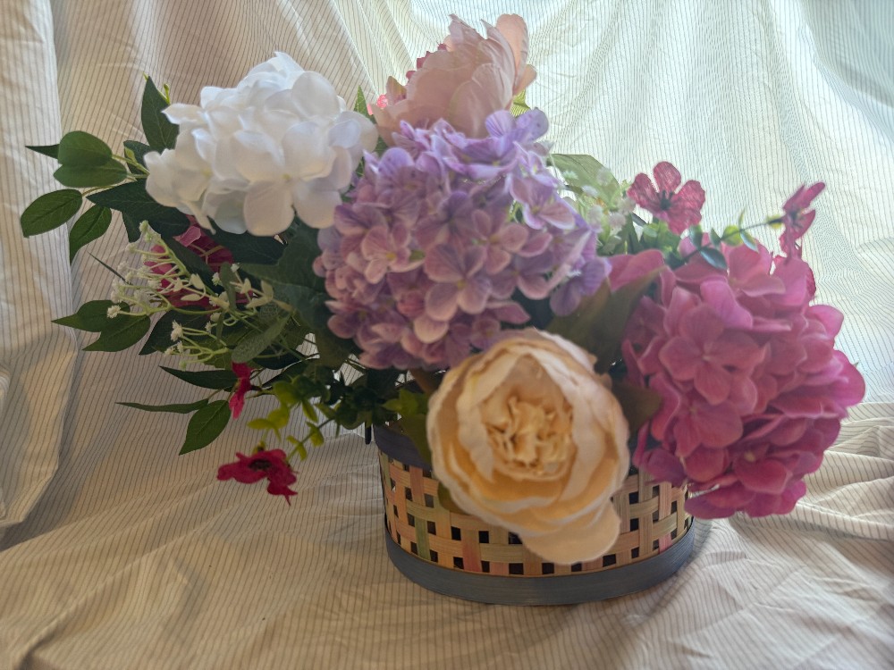 Silk Floral in Basket 19"X12" Pink, Purple, White