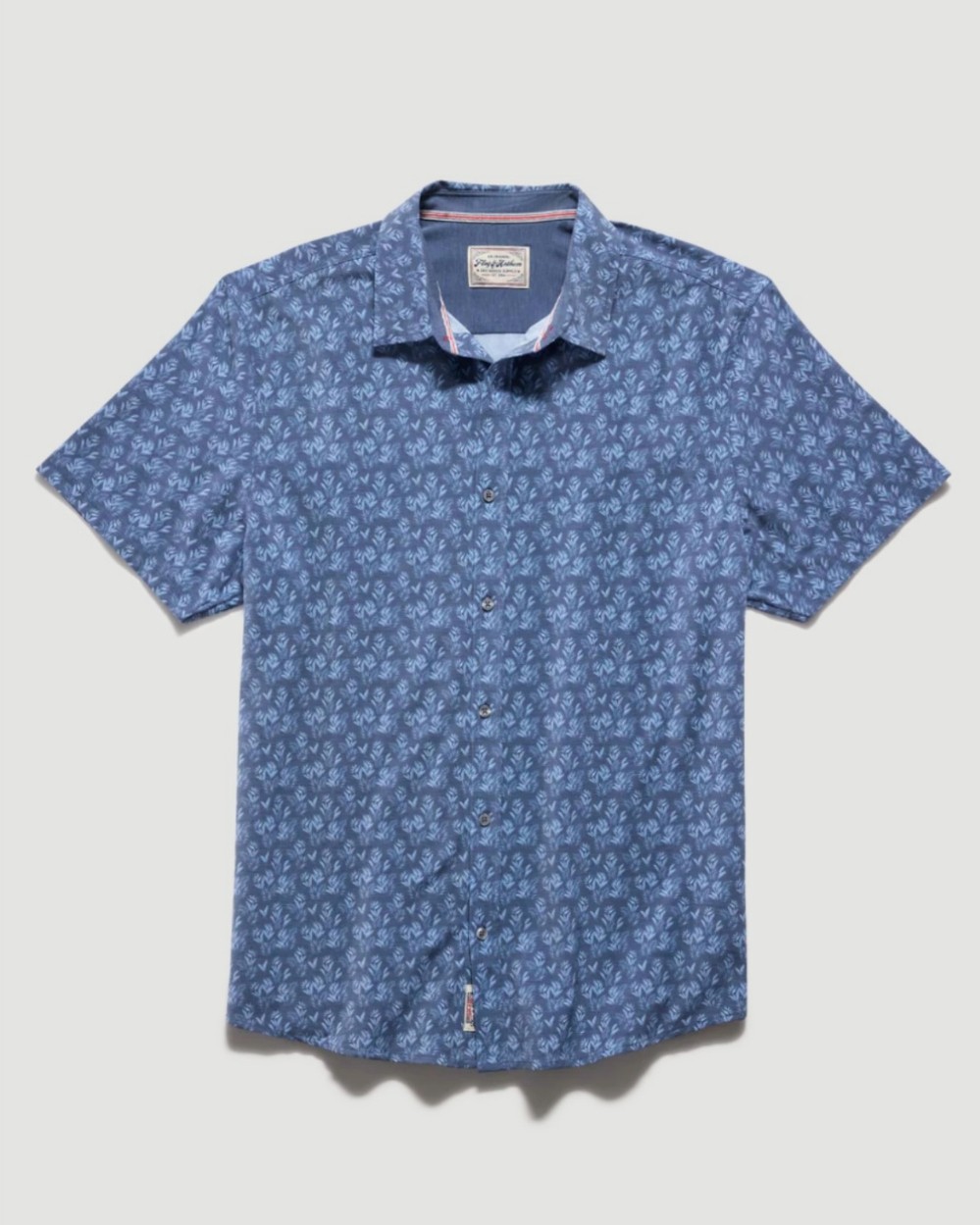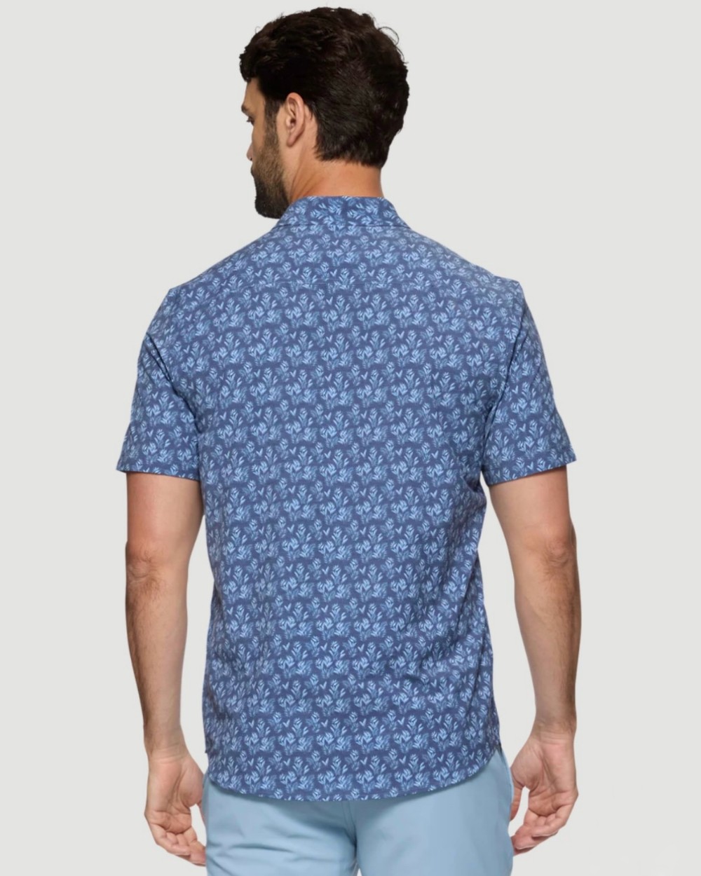 Designed for all-day comfort and versatility with the ideal amount of stretch for increased mobility and a superior fit, this short-sleeved shirt is our go-to as soon as temperatures rise. Expertly crafted with soft, lightweight fabric that stays cool in any situation, and equipped with a hidden eyewear wipe to keep optics clean and clear, it's the perfect shirt for warm weather days or nights due to a collar that stats crisp and sharp. Contrast fabric inside collar stand, back yoke, front placket, and sleeve cuffs. Single front patch pocket; button closures. Tailored athletic fit.