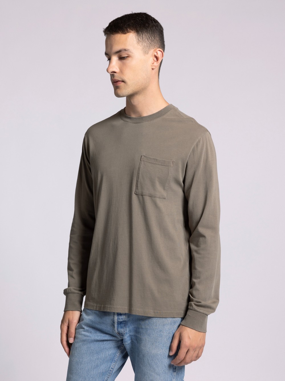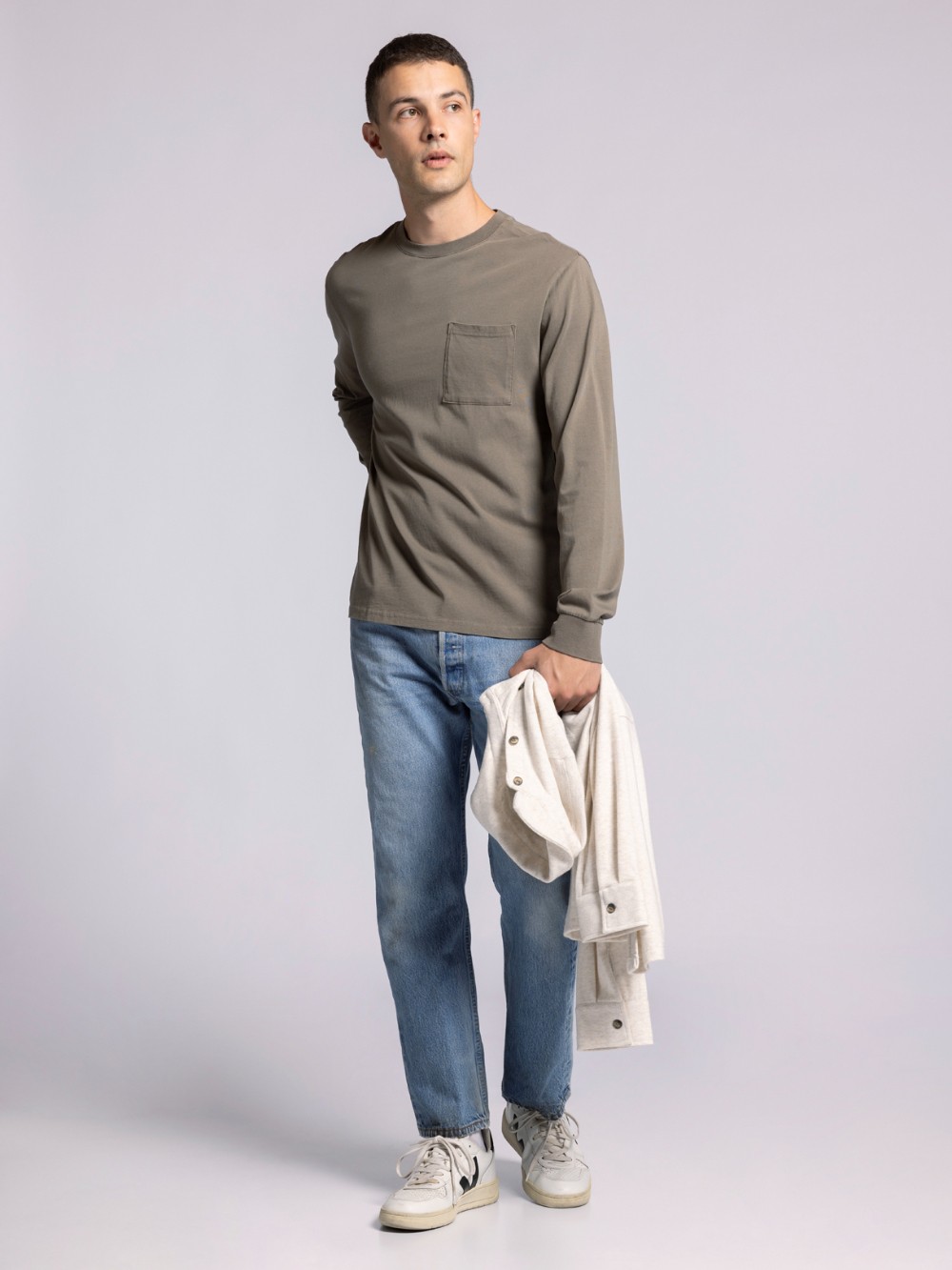 Crew neckline, single chest pocket, ribbed cuff / 100% cotton