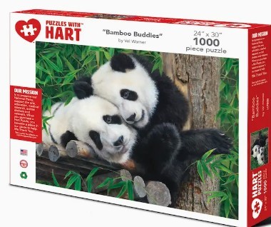 Ailuropoda melanoleuca, also called the panda bear, is a bearlike mammal inhabiting bamboo forests in the mountains of central China. With its distinctive black and white coat, is adored by the world and considered a national treasure in China. Enjoy their mischief in this 24”x 30” 1000 piece puzzle.