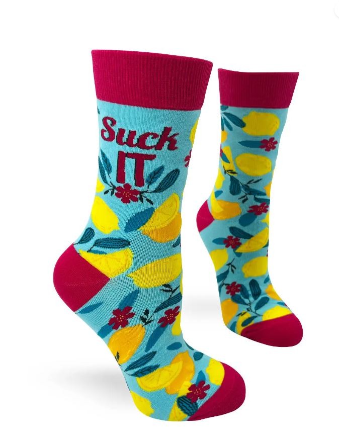 Funny "Suck It" Women's Novelty Crew Socks Featuring Lemons.