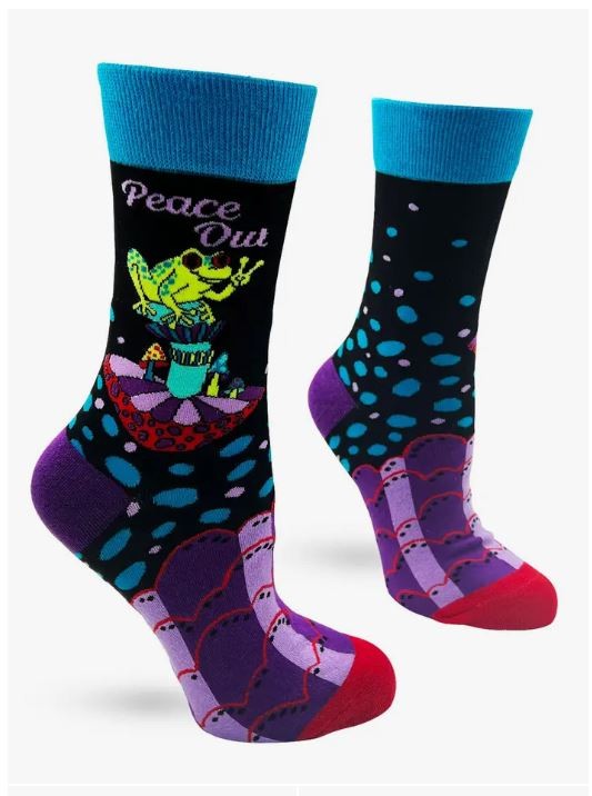 Women's Novelty Crew Socks "Peace Out Frog"