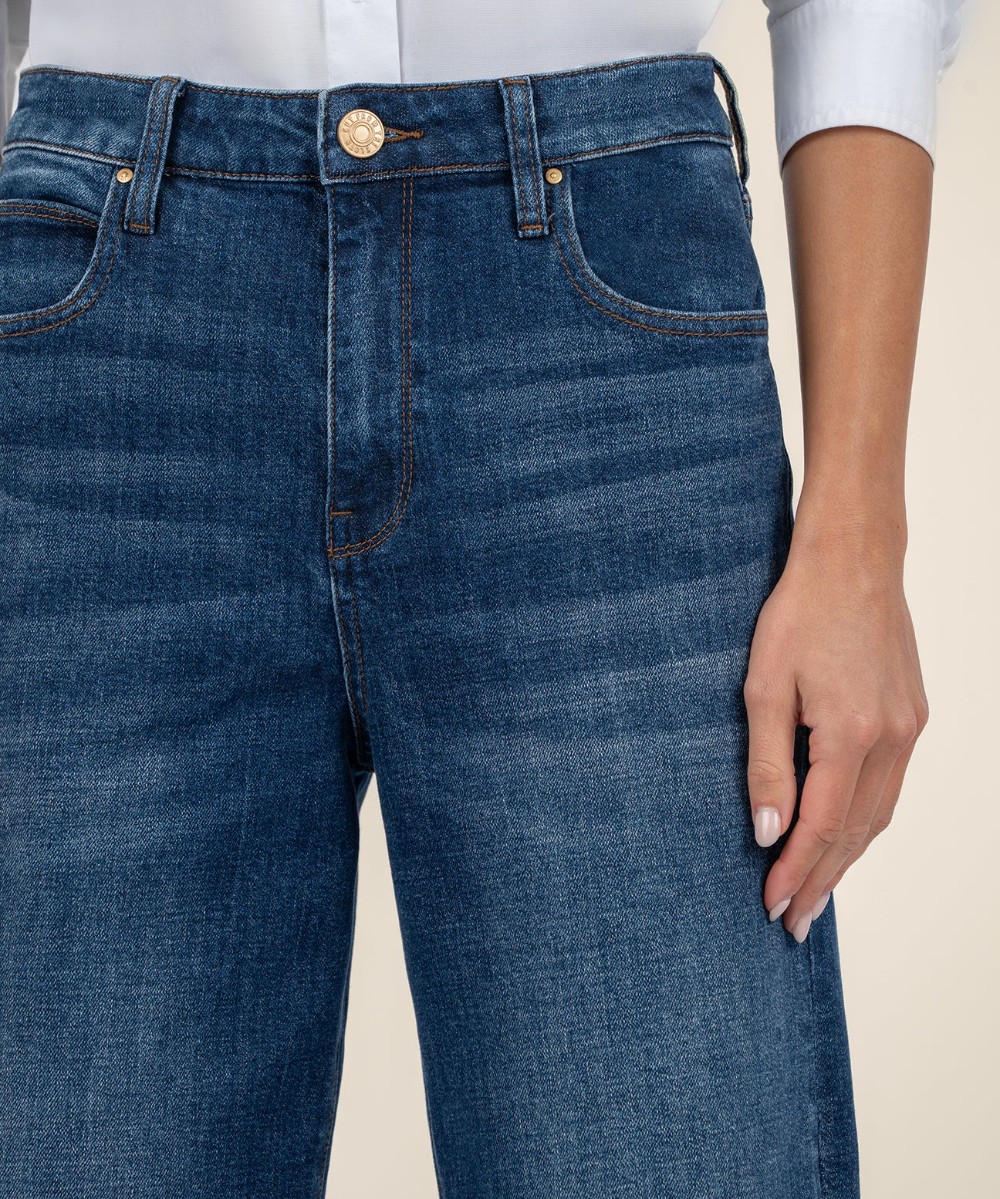 Vintage-inspired wide legs that look good cuffed or worn long designed in a high rise stretch denim.
