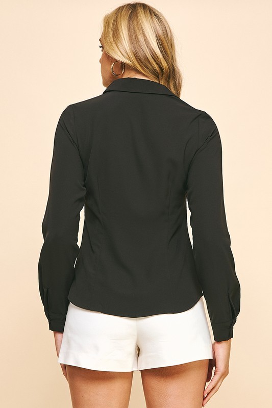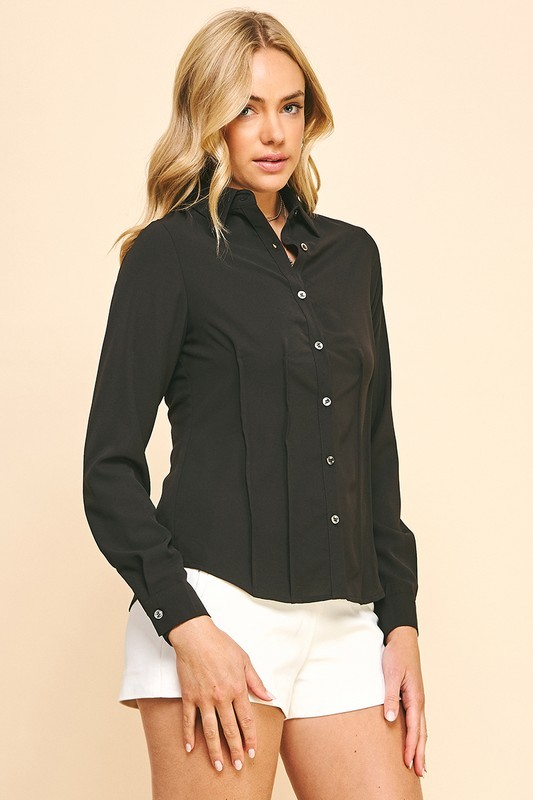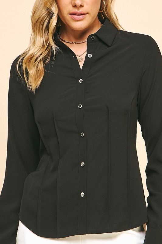 Button down blouse with pintuck detail at front / 97% polyester, 3% spandex